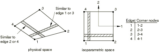 In three-dimensional cases the fractional distances , and are given along the first two edges of the face identified in Figure 7 for the isoparametric direction chosen.