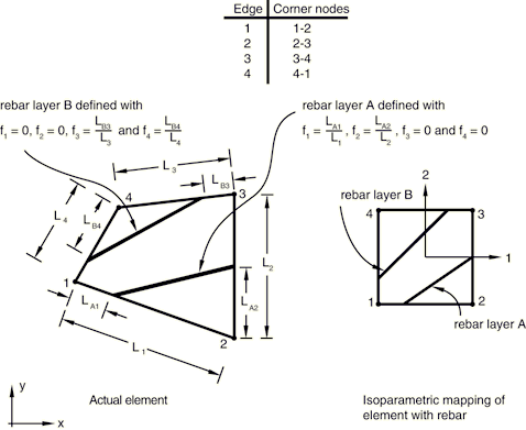 Set GEOMETRY=ISOPARAMETRIC (default) to indicate that the layer of rebar is parallel to a direction of the element local (isoparametric) coordinate system.
