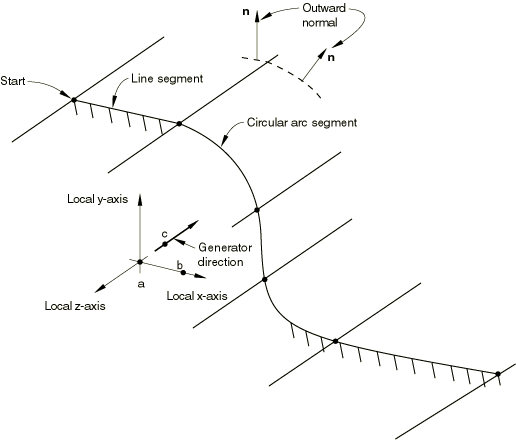 Set TYPE=CYLINDER to define a three-dimensional rigid surface by providing connected line segments and then sweeping them along a specified generator vector.