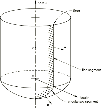 Set TYPE=REVOLUTION to define a three-dimensional rigid surface by providing connected line segments, which are given in an plane and are rotated about an axis.
