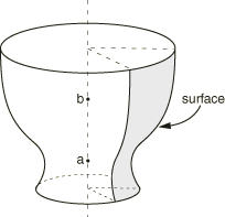 Distance R of the center of the circular arc from the axis of revolution (see Figure 4).