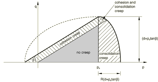 In using this form with the consolidation mechanism, can be replaced by , the effective creep pressure, in the above relation.