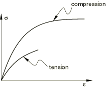 The cast iron plasticity model describes the mechanical behavior of gray cast iron, a material with a microstructure consisting of a distribution of graphite flakes in a steel matrix. In tension the graphite flakes act as stress concentrators, resulting in yielding as a function of the maximum principal stress, followed by brittle behavior. In compression the graphite flakes do not have an appreciable effect on the macroscopic response, resulting in a ductile behavior similar to that of many steels.