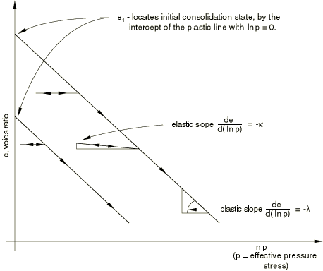 the Cam-clay model: a hydrostatic compression test (an oedometer test is also