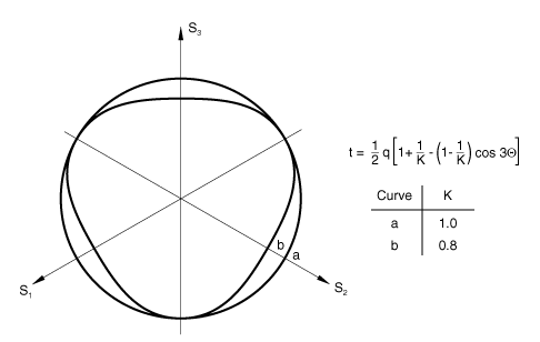 plane. Figure 2. Isotropic clay yield surface sections in the -plane
