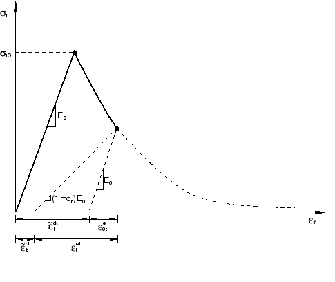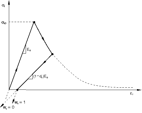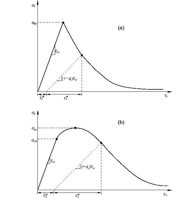 Figure 1. Response of concrete to uniaxial loading in tension (a) and