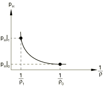 The initial state of the material is determined by the initial values of specific energy, , and pressure stress, p. Abaqus/Explicit automatically computes the initial density, , that satisfies the equation of state. You can define the initial