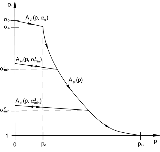 governed by the linear elastic shear and the pressure-dependent plasticity model, while the
