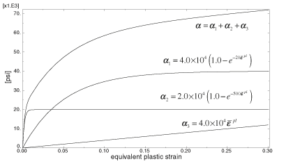 of the material parameters is discussed in Usage and Calibration of the Kinematic Hardening Models below. Figure 1 shows an example of nonlinear kinematic hardening with three backstresses.