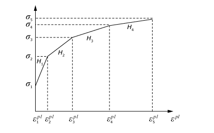 hardening components. The multilinear kinematic hardening model has a piecewise constant