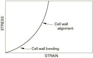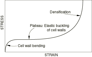 5%) the foam deforms in a linear elastic manner due to cell wall bending.