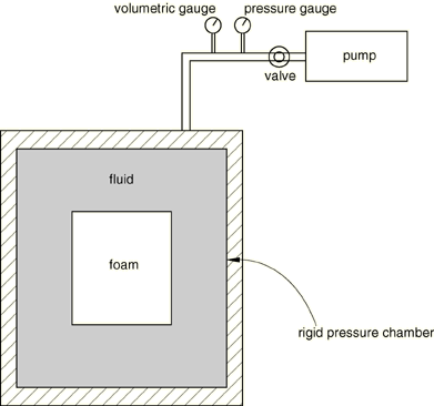 The pressure exerted on the foam specimen is the hydrostatic pressure of the