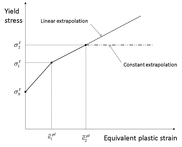 linearly outside the range. If the latter method is selected, Abaqus extrapolates the property linearly using the slope at the last specified data