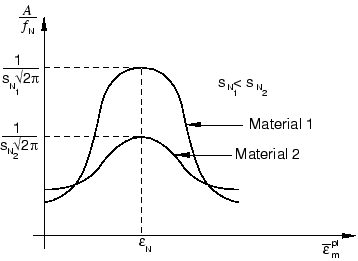 The normal distribution of the nucleation strain has a mean value and standard deviation . is the volume fraction of the nucleated voids, and voids are nucleated