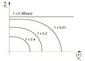 material is fully dense, and the Gurson yield condition reduces to the Mises