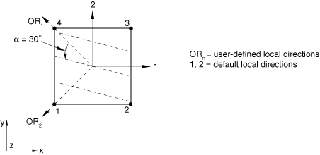 If you do not specify a user-defined orientation, the local 1-direction is based on the default projected local coordinate system. See Conventions for a definition of the default projected local directions on a surface in space.
