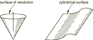 is swept (cylindrical surfaces), revolved (surfaces of revolution), or, in the