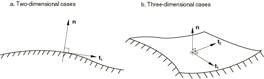 surface tangents form a right-handed orthonormal system. In two-dimensional
