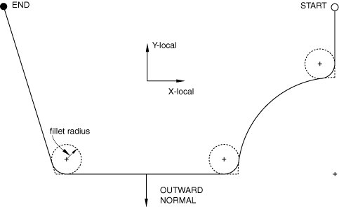 The sharp corners have been smoothed using the fillet radius so that the normal and tangent