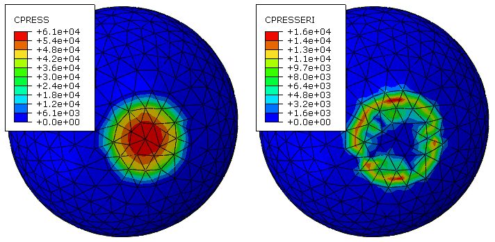 Figure 1. Contour plots of CPRESS and CPRESSERI for contact between a deformable sphere and a rigid