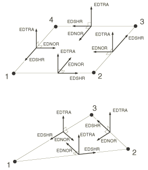 the tangential, normal, and transverse directions of the shell, as shown in Figure 6. In a geometrically nonlinear analysis the shear, normal, and transverse edge tractions