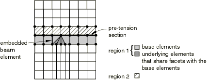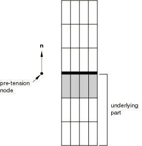 underlying elements that lie on the pre-tension section relative to the same nodes when they