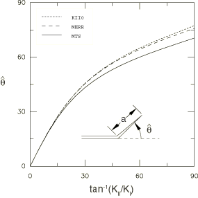 where the crack propagation angle is measured with respect to the crack plane. represents the crack propagation in the “straight-ahead” direction. if while if