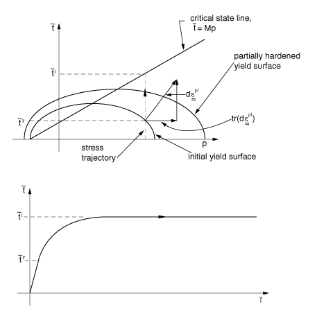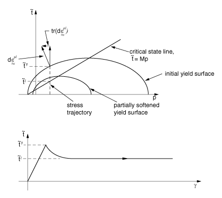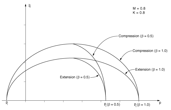 soil skeleton causes the yield surface to shrink. The choice of elliptical arcs