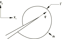 where is a contour beginning on the bottom crack surface and ending on the top surface, as shown in Figure 1; the limit indicates that shrinks onto the crack tip; is a unit vector in the virtual crack extension direction; and is the outward normal to . is given by