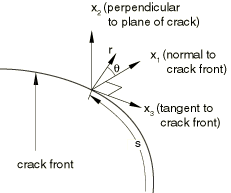 To evaluate these integrals, Abaqus defines the domain in terms of rings of elements surrounding the crack tip. Different “contours” (domains) are created. The first contour consists of those elements directly connected to crack-tip nodes. The next contour consists of the ring of elements that share nodes with the elements in the first contour as well as the elements in the first contour. Each subsequent contour is defined by adding the next ring of elements that share nodes with the elements in the previous contour. is chosen to have a magnitude of zero at the nodes on the outside of the contour and to be one (in the crack direction) at all nodes inside the contour except for the midside nodes (if they exist) in the outer ring of elements. These midside nodes are assigned a value between zero and one according to the position of the node on the side of the element.