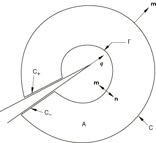where A is the domain enclosed by the closed contour . It is worth noting that the domain A includes the crack-tip region as .