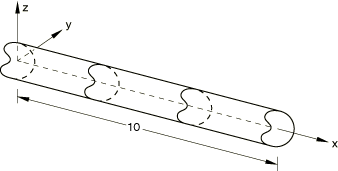 Problem descriptionModel:Area, A = 0.01. Material:Linear elastic, Young's modulus = 30.0 × 106, Poisson's ratio = 0.3. Loading and boundary conditions for Step 10.0 at 0, 0.0 at 10; displacement boundary conditions applied at the end nodes: 0.01 + 0.01x. Loading and boundary conditions for Step 2The node at 0 is fixed; 0 at 10; concentrated load at the free end: 3000. Loading and boundary conditions for Step 30.0 at 0, 0.0 at 10; displacement boundary conditions applied at the end nodes: 0.01 + 0.01x, where x is the value of the coordinates in the undeformed geometry. Loading and boundary conditions for Abaqus/ExplicitThe node at 0 is fixed; 0 at 10; concentrated load at the free end: 3000 using a smooth step amplitude definition. Solution is computed at time 1.0, including geometric nonlinearity. Reference solutionThe analytical results for each step are presented below. Step 1: PERTURBATIONSection forces: axial force 3000; tip displacement: 1.1 × 10−1. Step 2: NLGEOMSection forces: axial force 3000; tip displacement: 1.005 × 10−1. Step 3: PERTURBATIONSection forces: axial force 2970; tip displacement: 1.1 × 10−1. Dynamic Step in Abaqus/Explicit:Section forces: axial force 3000; tip displacement: 1.005 × 10−1. Results and discussionAll elements yield exact solutions except the cubic beams, which differ from the analytical solution by about 2% for the NLGEOM step and the subsequent perturbation step. The elements are recommended only for linear analysis. The results for pipe elements in Abaqus/Explicit are the same as those in Abaqus/Standard. Input files