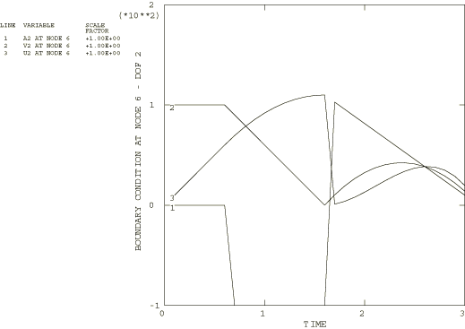 The application of real and imaginary boundary conditions is tested in the direct-solution steady-state dynamic procedure. The test is performed in a structural analysis and an acoustic analysis. Each test is performed in three steps. The first step applies nonzero real boundary conditions to particular degrees of freedom of the structure, and the steady-state harmonic response is obtained. The second step is identical to the first step except that the nonzero boundary conditions are applied to the imaginary components of the specified degrees of freedom. The expected result is that the response of the degrees of freedom for the two steps should be identical but 90° out of phase from one another. The third step is identical to the first two steps except that nonzero boundary conditions are applied to both the real and imaginary components of the specified degrees of freedom. The expected result for this step is that the response of the degrees of freedom are 45° out of phase from the response in the previous two steps.