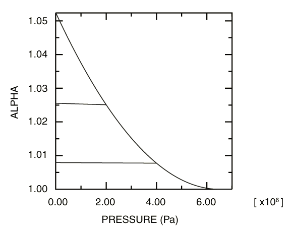 where is the same as the nominal volumetric strain measure, . Thus, setting the parameters 0.0 and 0.0 gives the simple hydrostatic bulk response, which is identical to