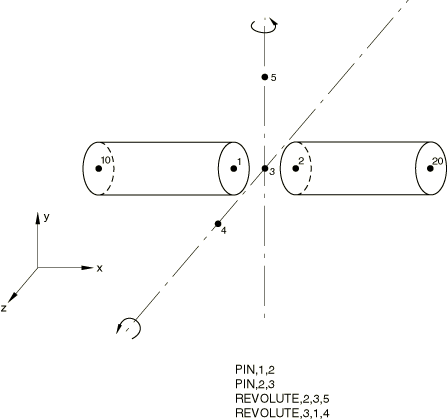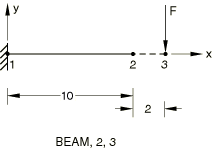 Nodes 2 and 3 are connected by a beam element of type B31. This element is then included in a rigid body.