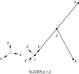 Nodes 3 and 4 are included in a rigid body tie-type node set.