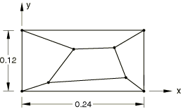 ProductsAbaqus/Standard Elements testedS3 S3R S4 S4R S4R5 S8R S8R5 S9R5 STRI3 STRI65 Problem descriptionModel:Thickness, t = 0.001. Material:Linear elastic, Young's modulus = 1.0 × 106, Poisson's ratio = 0.25. Boundary conditions:(applied to all exterior nodes) 0, 10−3()/2, 10−3(/2), −10−3(/2). Reference solutionStress: 0.6667, 0.20. Results and discussionAll elements yield exact solutions except S8R. S8R will pass the patch test if the element shapes are rhombic, but they fail the test for general quadrilaterals. Input files