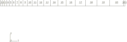 ProductsAbaqus/Standard Elements testedCAX4I CAX8R CPE4I CPE8R Features testedThe automatic incrementation capability provided for integration of time-dependent material models and the use of the viscoelastic material model for a larger number of Prony series terms are tested in this problem. It also demonstrates the use of viscoelastic material models in dynamic analysis. Problem descriptionThe structure is a solid rocket motor, modeled as a long, hollow viscoelastic cylinder encased in a thin steel shell. The rocket's ignition is simulated by a transient internal pressure load acting at the inner diameter of the viscoelastic cylinder. The transient response of the structure is sought. Model:The viscoelastic cylinder has an inner radius of 10 mm and an outer radius of 50 mm. The steel case is 0.5 mm thick. We assume plane strain, with no gradient of the solution, in the axial direction. The problem is, therefore, modeled with a single row of axisymmetric, second-order, reduced-integration elements (CAX8R). The viscoelastic material is represented using 20 elements, while the case is modeled with a single element. Mesh:The mesh is shown in Figure 1. The mesh is finer toward the inner diameter of the cylinder, where the stresses are highest. Material:The extensional relaxation function of the viscoelastic material is defined using a six-term Prony series: The instantaneous modulus, , is 1651.59 MPa; and the six pairs of relative moduli and time constants are
