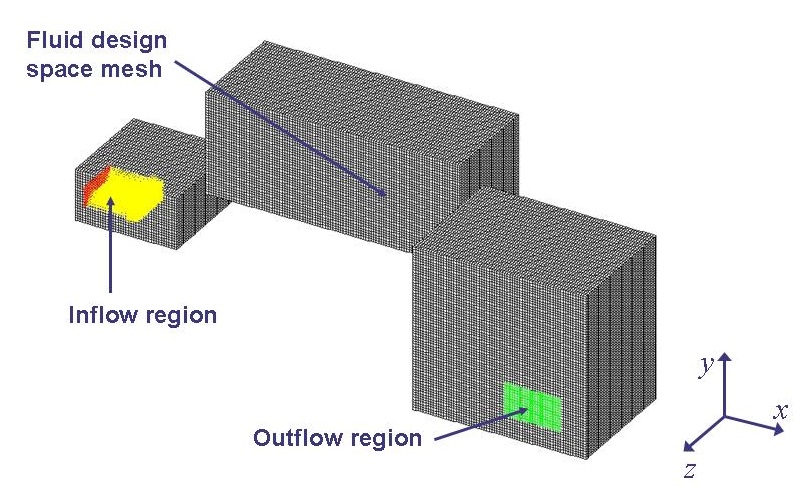 Solution Parameters The standard material model for air is selected together with a k-epsilon High Reynolds number turbulence model (default parameters). The solution method is set to steady state. (scalar solver, CG method). Cell Types For this optimization problem, the complete fluid mesh is used as design space. Therefore, all cells are used as design cells in SIMULIA Tosca Fluid and hence are all assigned to the same cell region. | |||||||||||||||||||||||||||