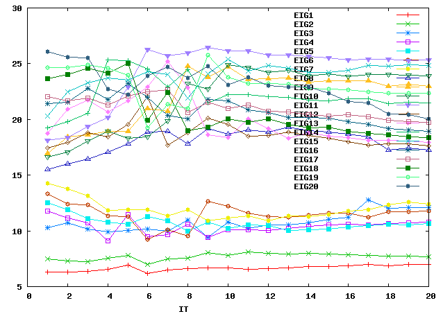 | Convergence of eigenvalues of a bandgap optimization (15 Hz) |