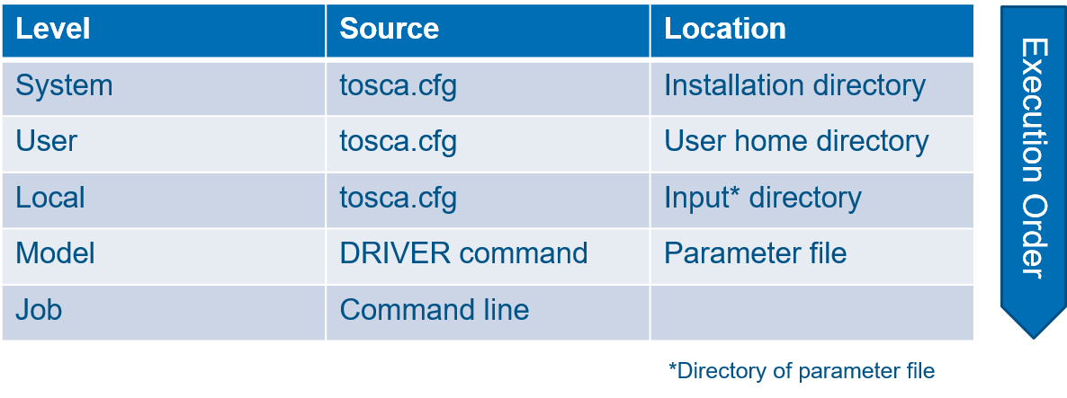 DRIVER-CommandRefer to the DRIVER-command documentation for a detailed description of its features. Environment VariablesTosca Structure uses and sets several environment variables during the optimization. Some can be configured by the user (either in the installation process, directly using standard operating system procedures or with Tosca Structure configuration files). Internal variables cannot (should not) be set or changed manually. Most of the variables have a value of either 0 or 1, meaning whether it is ON or OFF. To enable the feature it controls set it to 1 (ON), to disable - either omit the definition of the variable, or set it to 0 (OFF).