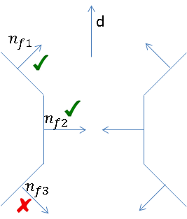 the angle between the face normal vector and the demold direction must be less (or equal) to 90°.