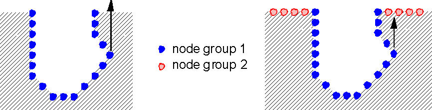 Controller-Based OptimizationDefining a demolding or forging restriction involves specifying the manufacturing direction. The area to restrict is defined using a node group of surface nodes. Demolding in the specified direction or forging against this direction is maintained during optimization and undercuts are avoided. The link condition for the demold restriction is defined as follows: