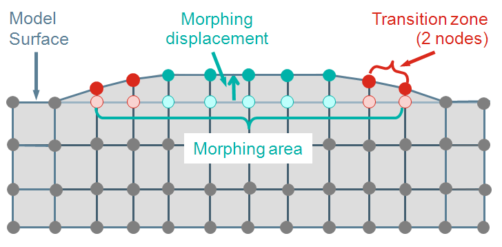 displacement applied to the rest of the morphing area, but are moved
