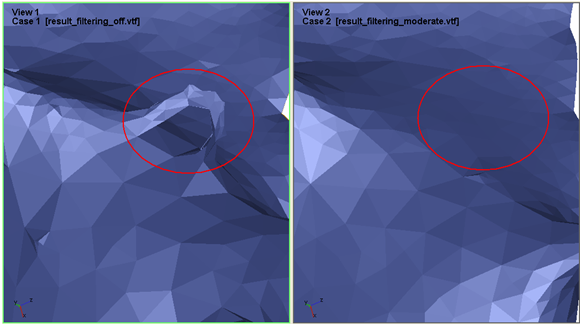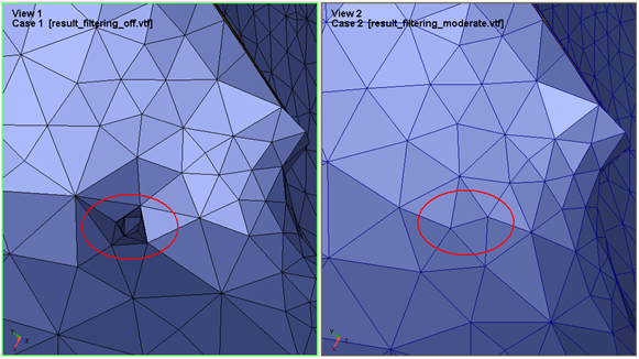 figures for the influence of the result filtering on the geometry in