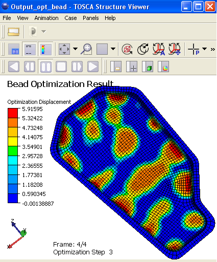 Optimized geometry with the fringe plot of displacements (items under
