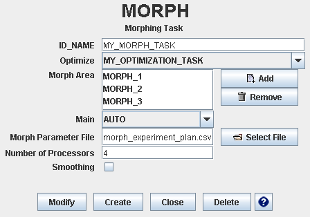 In the MORPH_AREA dialog, select the corresponding optimization task.