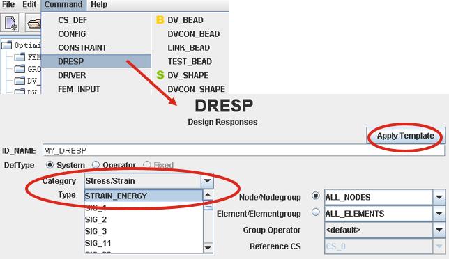 In the DRESP dialog, select Apply Template to access the simplest and most used